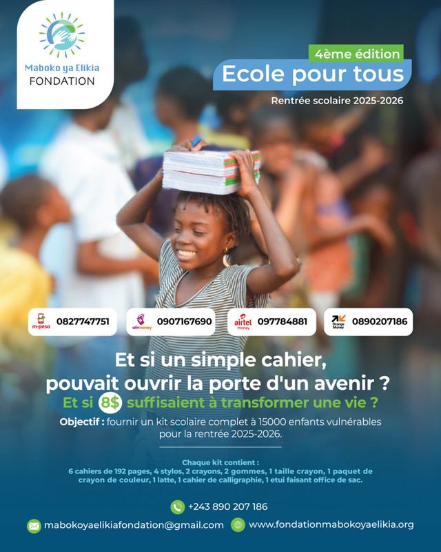 Crée en 2020, la Fondation Maboko ya Elikia est une organisation non gouvernementale basée à Kinshasa, ayant comme mission primordiale de contribuer à l'amélioration des conditions de vie des personnes vulnérables, en particulier les femmes et les enfants en milieu rurales et péri-urbaines via des programmes ciblés visant leur autonomisation économique, leur insertion sociale, et la promotion du développement durable.